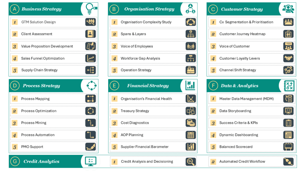 At Strategy Studio, we help CXOs to solve complex business problems – from growth strategy and customer experience to financial transformation, process optimisation, and credit analytics. Our work blends rigorous analysis, practical execution, and deep functional expertise. To exlpore, schedule a free 30 minutes exploratory discussion HERE.